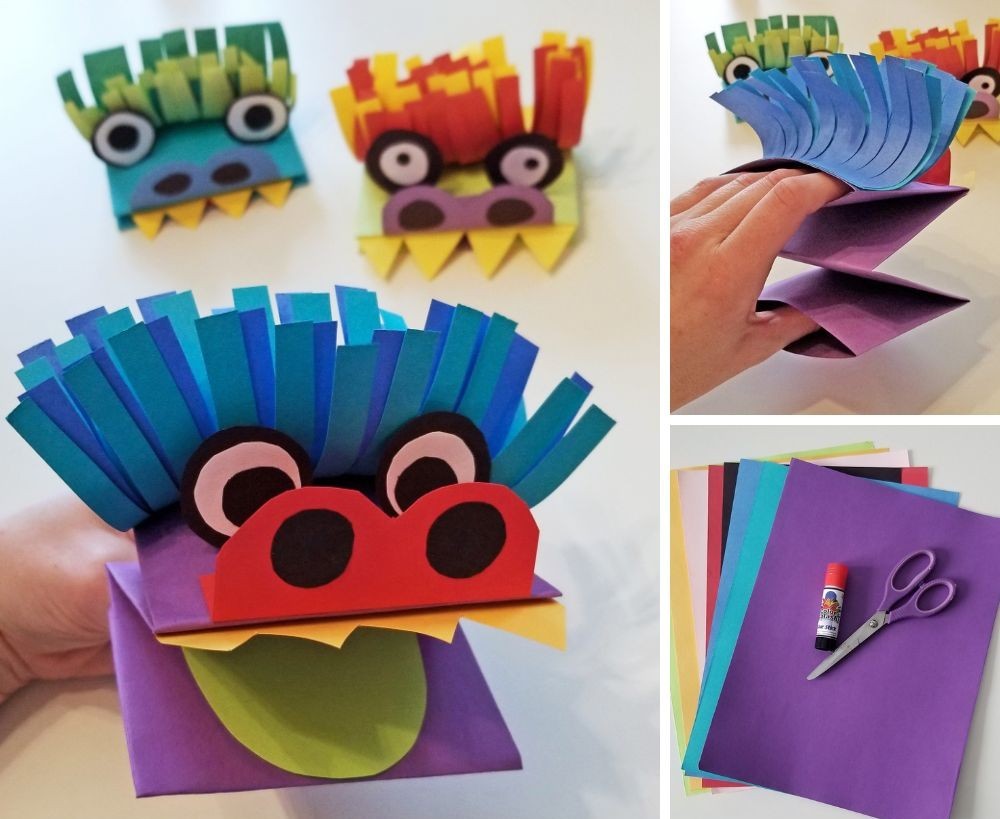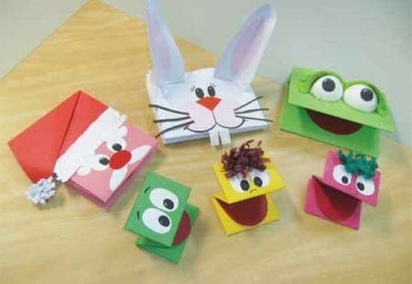 Materials include paper, cardboard, foam, wool, googly eyes, paper & wire.